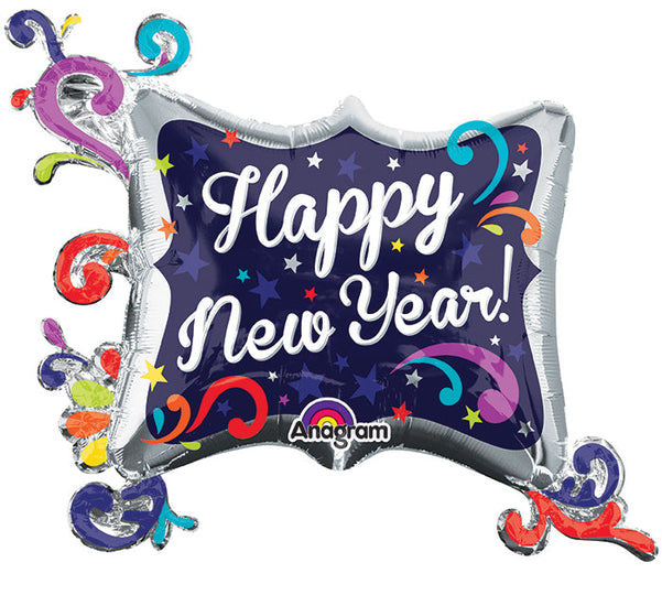 Paquete de globos con marco en forma de remolino de Año Nuevo SuperShape de 34"