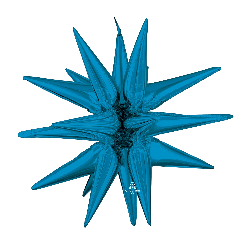 Introducing the 35" Multi-Balloon Magic Star (One Piece) Large Blue Foil Balloon. This striking balloon features a unique star shape with multiple pointed tips, creating a dynamic and intriguing design. The vibrant blue color adds a touch of elegance and sophistication to any event or celebration.