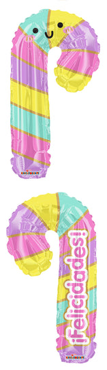 Globo de aluminio Baston Felicidades Kawai (español) de 36"