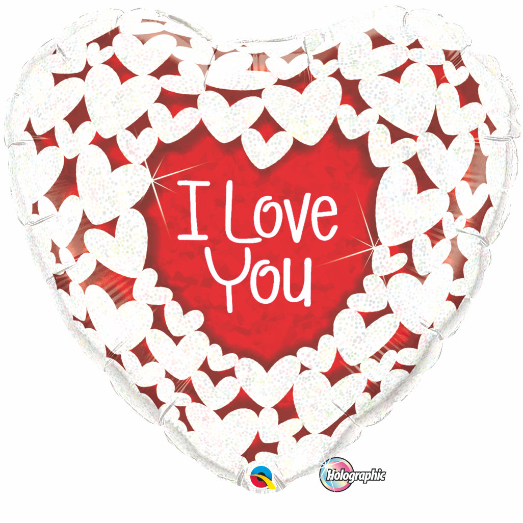 Globo Jumbo de Corazones con Purpurina Blanca Te Amo de 36"