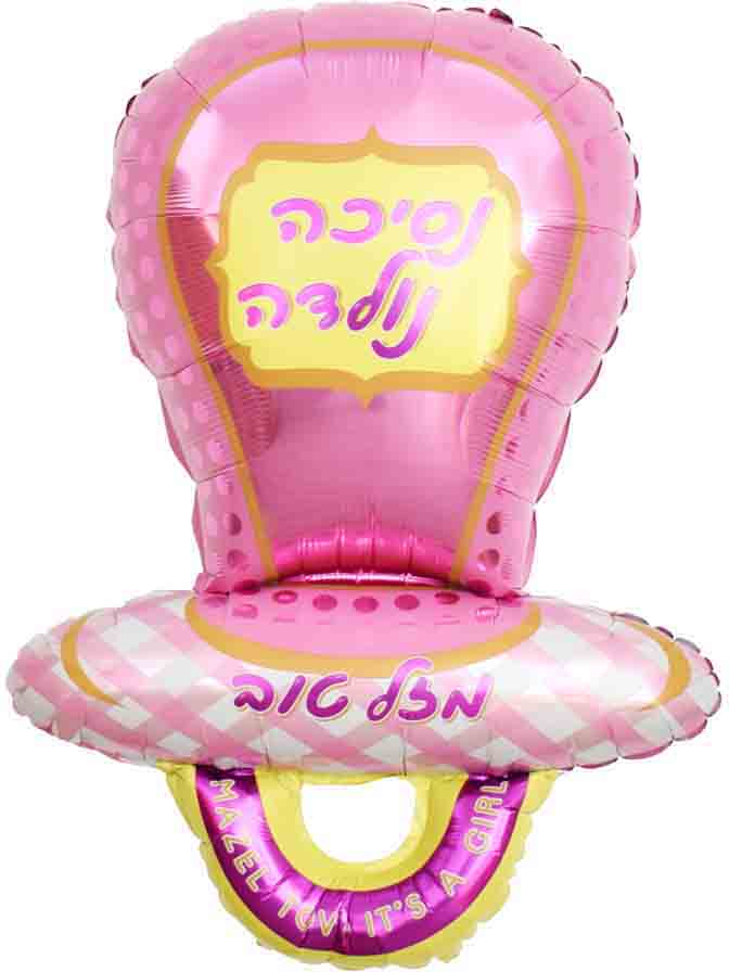 Globo de papel de aluminio con chupete hebreo Mazel Tov de 38" Es una niña princesa
