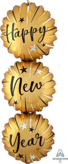 Globo de aluminio con forma de ráfaga de feliz año nuevo con infusión de satén SuperShape de 38"
