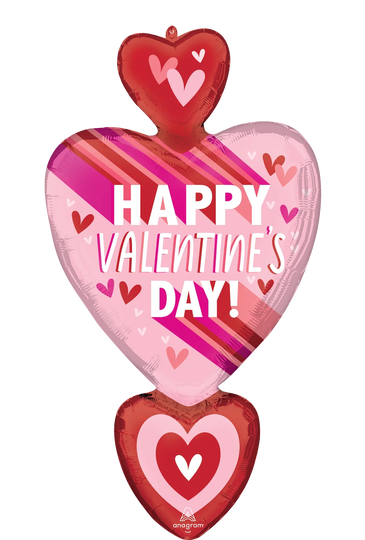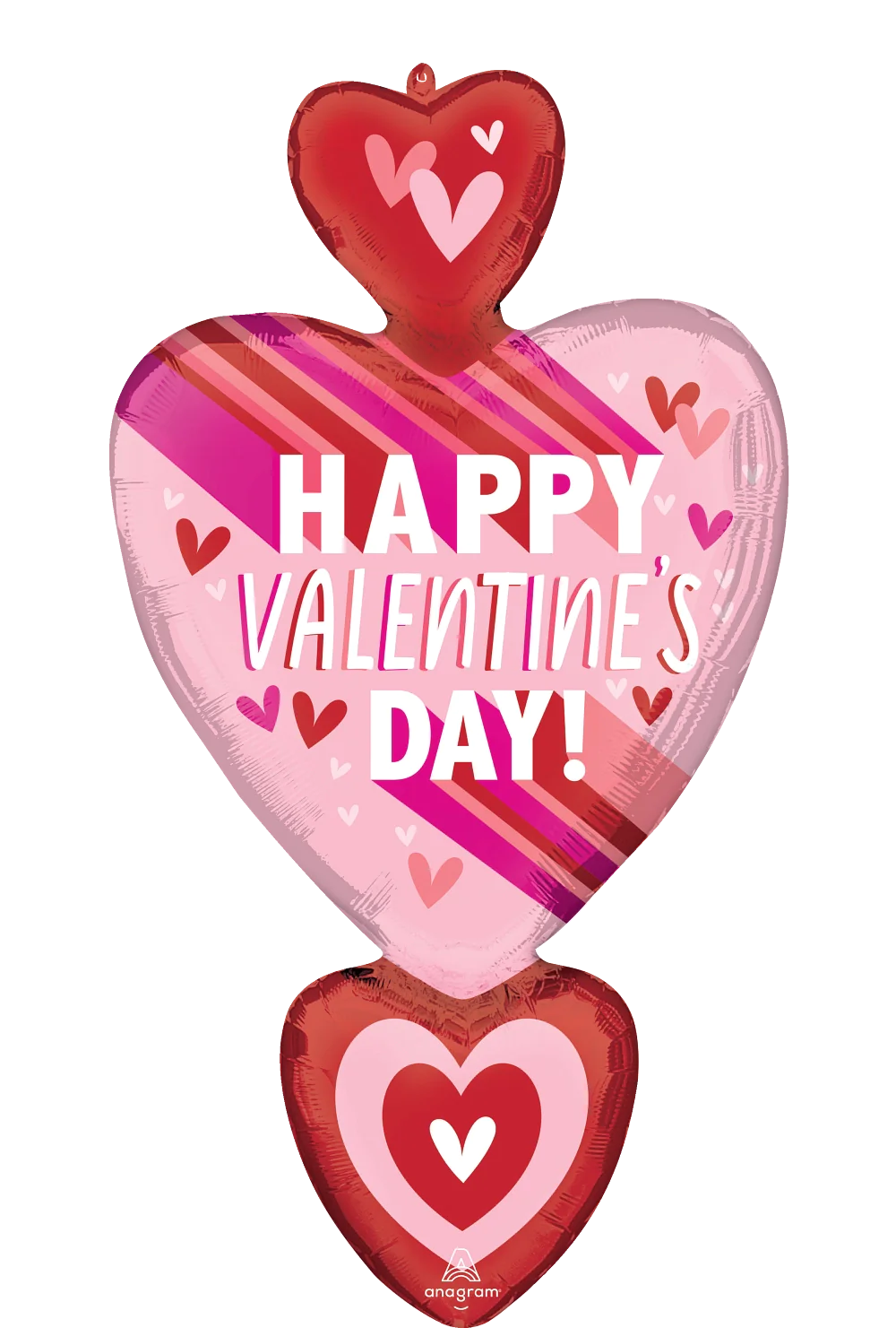Globo de aluminio Jumbo Happy Valentines Day de 38" con corazones y rayas