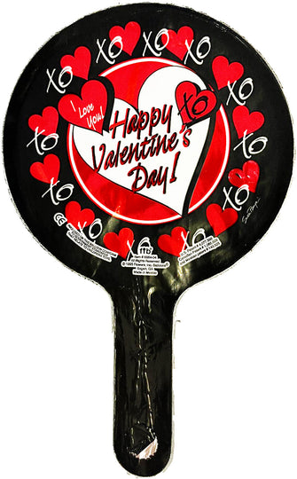 Celebrate love with this charming 4" foil balloon, perfect for Valentine's Day! Featuring a vibrant design with red and white hearts on a black background, this balloon displays the heartfelt message "Happy Valentine's Day!" in bold red letters. Surrounding the central message are smaller red hearts with the words "I Love You!" and "XO" written in white, adding an extra touch of romance. This air-fill only balloon requires heat sealing, making it a delightful addition to any Valentine's celebration.