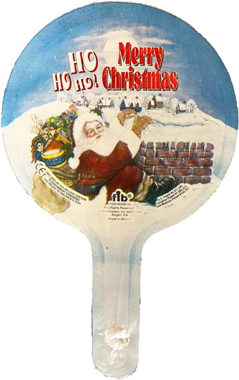 Celebrate the holiday season with this charming 4" foil balloon. Featuring a festive design of Santa Claus carrying a sack of toys against a snowy village backdrop, this balloon is sure to bring joy to any Christmas celebration. The balloon displays the cheerful message "HO HO HO! Merry Christmas" in bold red letters. Designed for air-fill only, it requires heat sealing to ensure it stays inflated. Perfect for adding a touch of holiday spirit to your decorations!