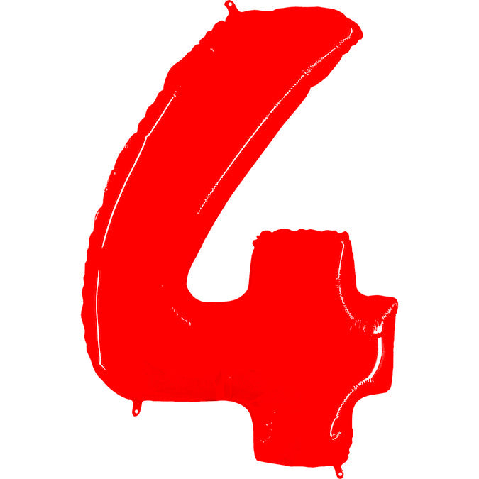 Globo de aluminio inflado de 40" (34") con forma de número 4, rojo fluorescente