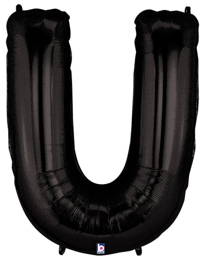 Globo Megaloon grande de aluminio con forma de letra U, inflado en negro, de 40" (34")