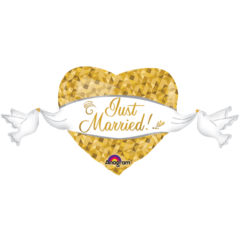 Globo SuperShape de 41" con forma de corazón y palomas recién casados