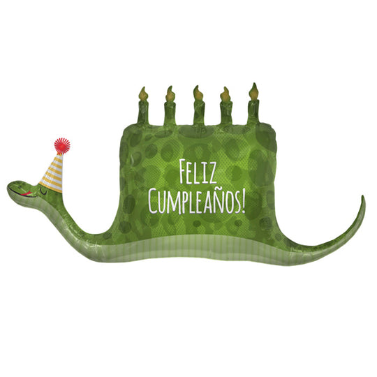Globo de aluminio Jumbo Feliz Cumpleanos con forma de serpiente y pastel de 48" (español)