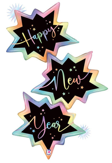 Globo de aluminio tipo trío de Año Nuevo con ópalo holográfico y forma de 51"