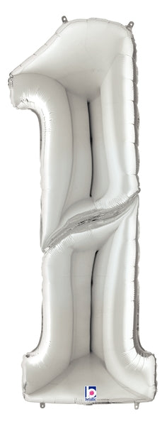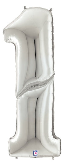 Globos con números Gigaloon plateados de la marca Betallic de 64"