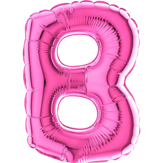 Globo de aluminio color fucsia con letra B de 7" únicamente con relleno de aire (requiere sellado térmico)