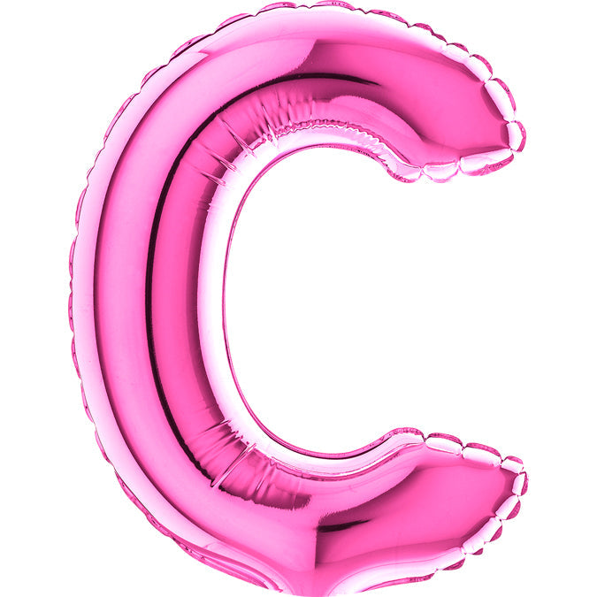 Globo de aluminio color fucsia con letra C de 7" únicamente con relleno de aire (requiere sellado térmico)