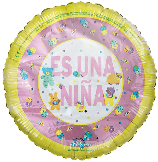 Globo de aluminio para bebé Airfill Only Es Una Nina de 9" (español)