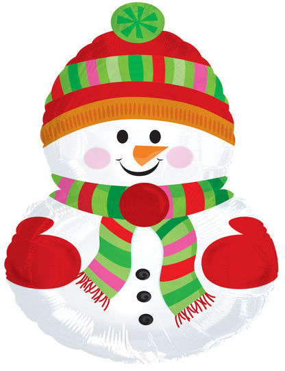 Muñeco de nieve con globo de aluminio Airfill Only de 9" con bufanda rosa