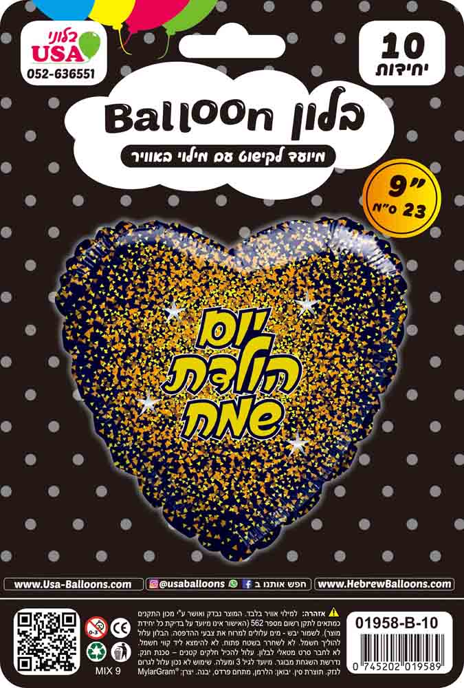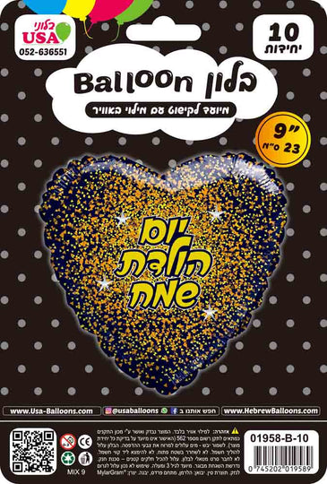 Globo de aluminio con forma de corazón negro, dorado hebreo/oro rosa, purpurina, feliz cumpleaños, Airfill Only, 9"