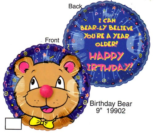 Globo sin nariz con osito de cumpleaños de Lil' Fuzzies Airfill Only de 9"