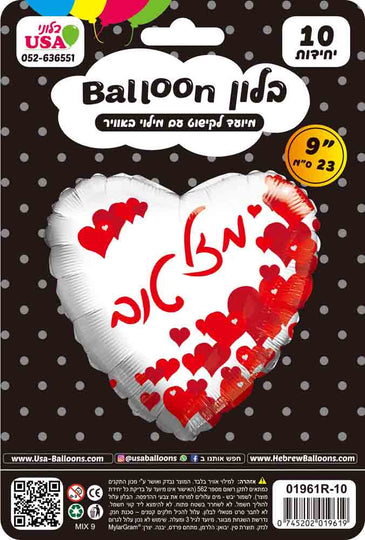 Globo de aluminio hebreo con patrón de corazón rojo hebreo Mazal Tov de 9" Airfill Only
