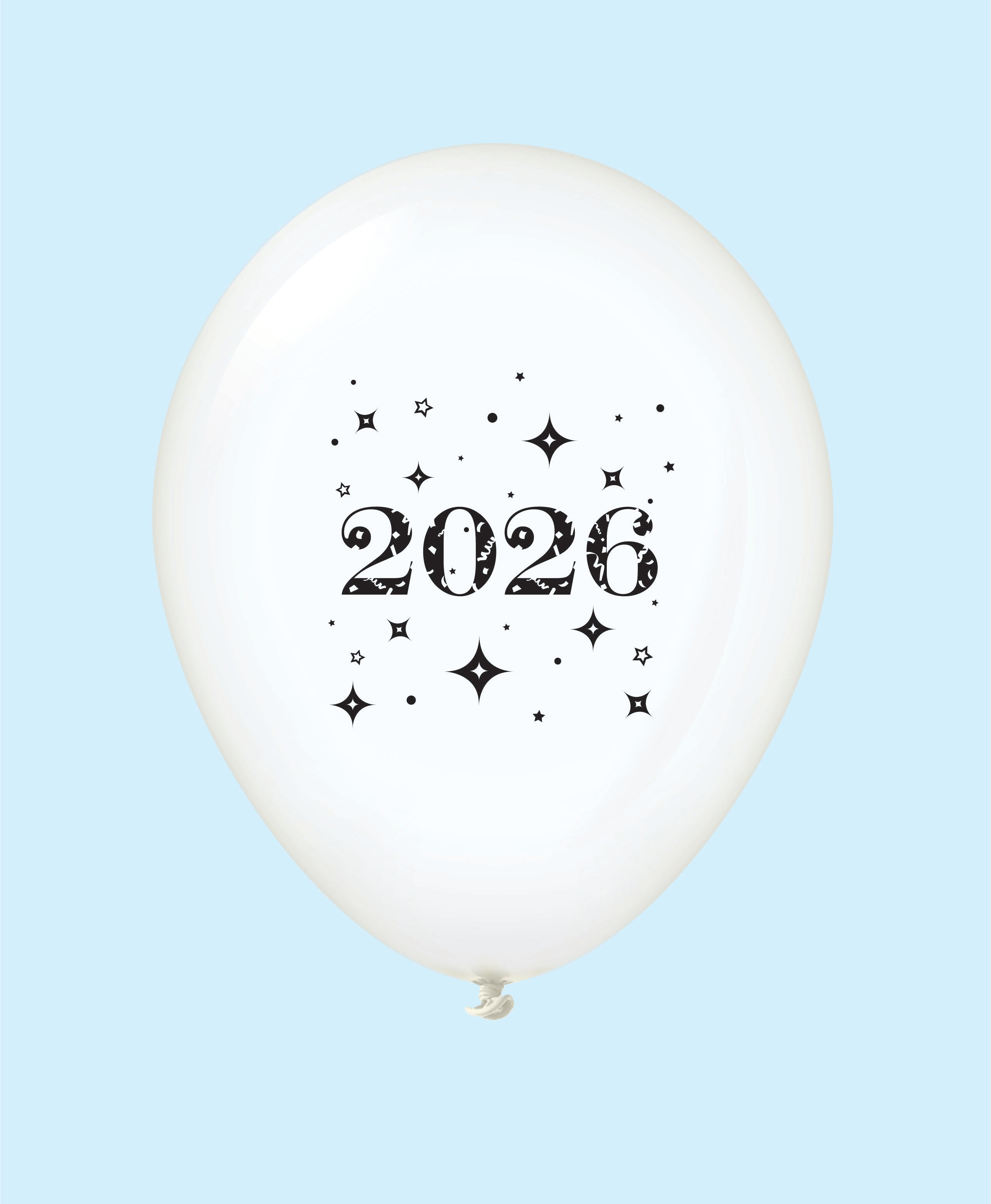 11" Year 2026 Stars Printed Latex Balloons Clear (25 Per Bag)