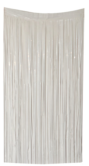 Telón de fondo de cortina con flecos de aluminio de 6,5 pies x 3,25 pies, MylarGram blanco