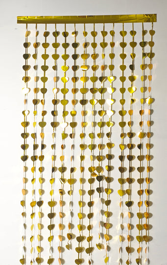 Telón de fondo de cortina con forma de corazón, con flecos y oropel, de 6,5 pies x 3,25 pies, MylarGram dorado