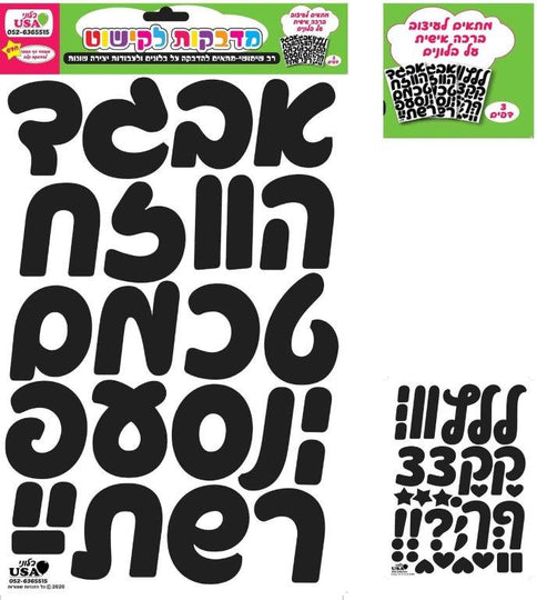 Hebrew Black Stickers 35X23Cm 3 Sheets