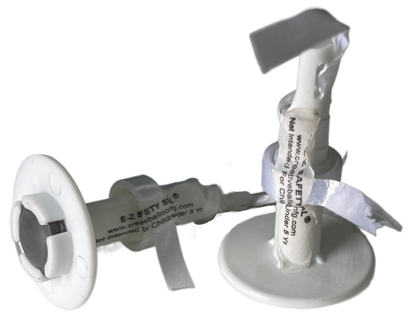 - (Descontinuado) Válvulas de seguridad EZ pequeñas con cinta blanca (se adapta a látex de 9 a 12”) Globos , pero requiere un “inflador con boquilla de aguja”)