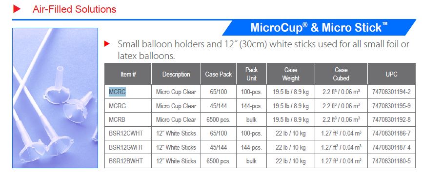 Micro Vaso (100 Unidades) para usar con el palito 93003 para globos pequeños de látex o foil.