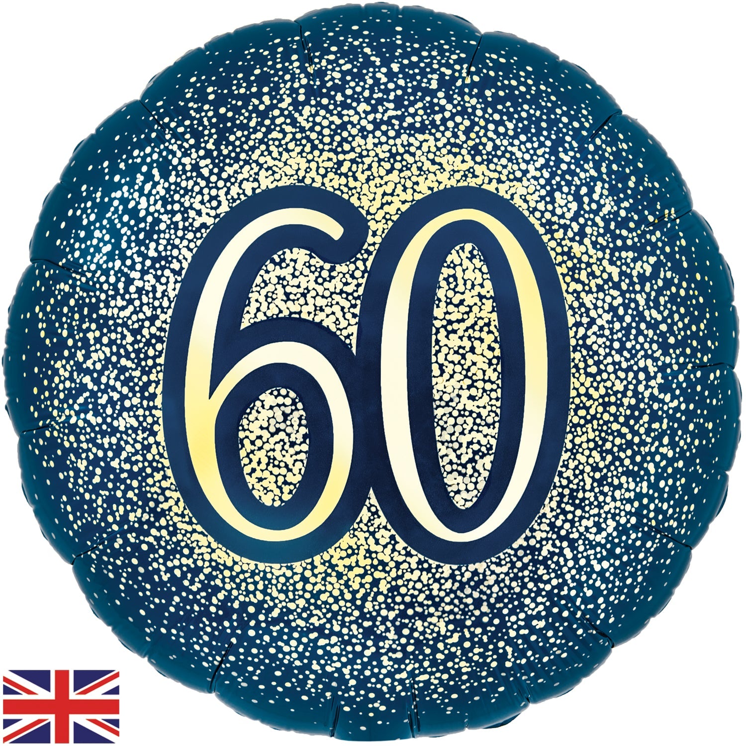 Globo de aluminio Oaktree dorado azul marino con purpurina metálica para cumpleaños número 60 de 18"