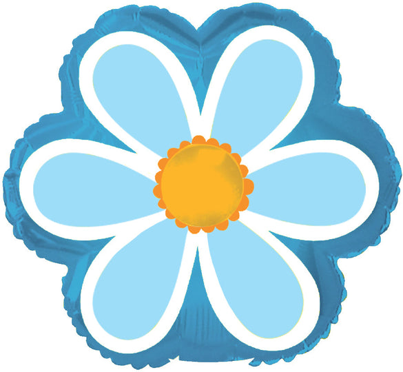 10" Airfill Only Light Blue Flower On Blue Foil Balloons