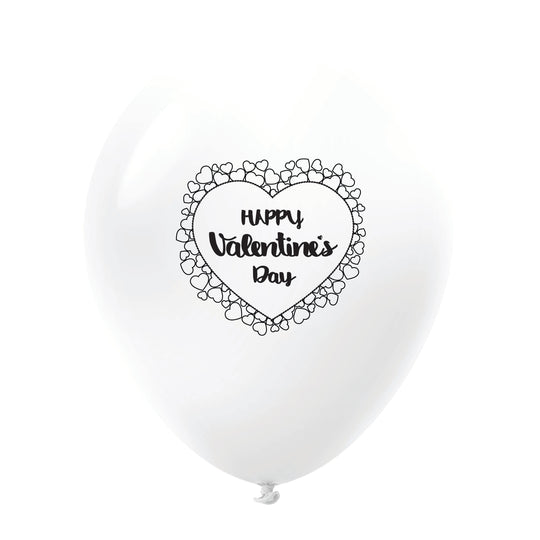 11" Happy Valentine's Day Heart Border Latex Balloons (25 Count) White