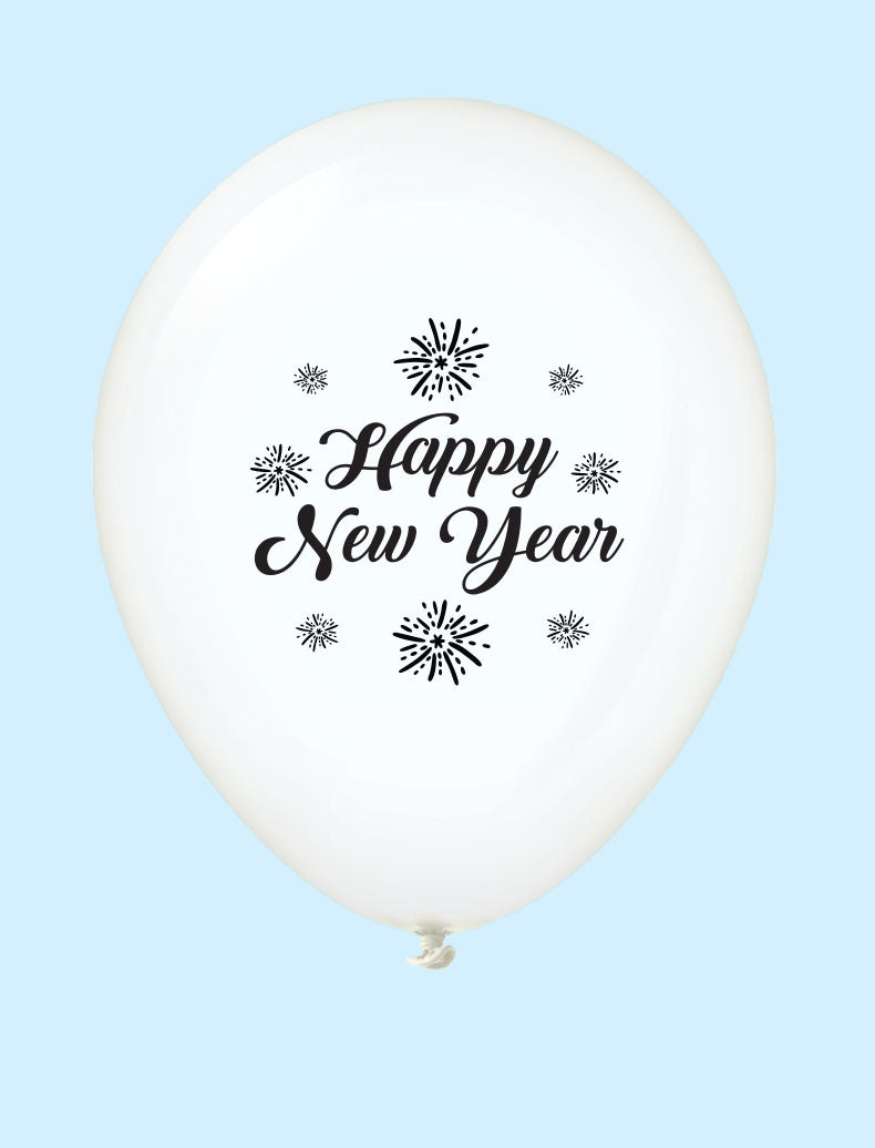 11" New Years Fireworks Latex Balloons Clear (25 Per Bag)