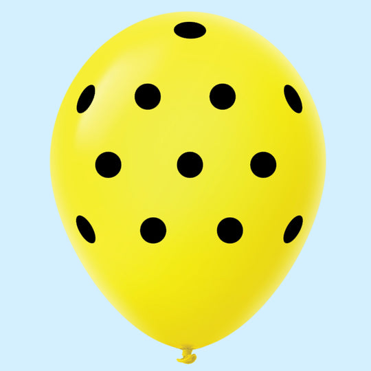 11" Polka Dots Latex Balloons (25 Count) Yellow BLACK DOTS