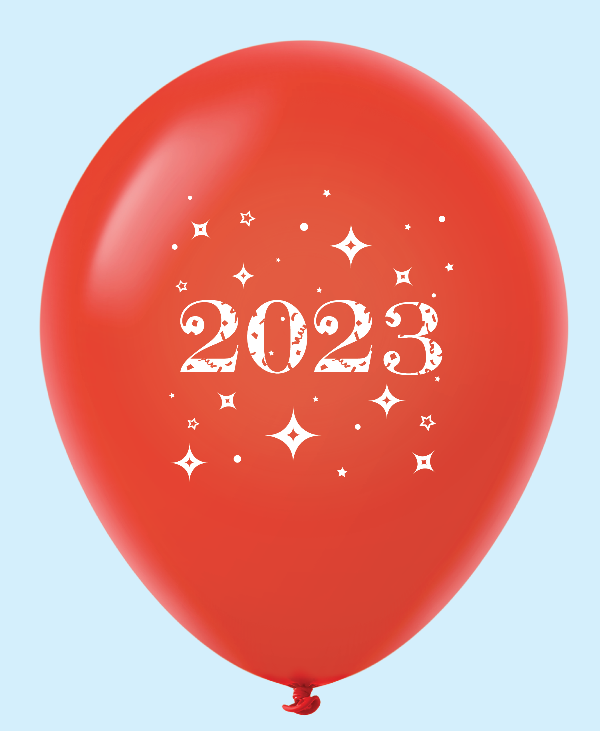 11" Year 2023 Stars Latex Balloons Red (25 Per Bag)