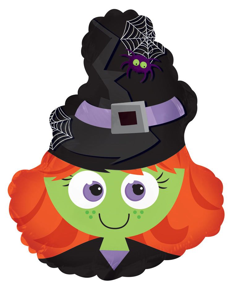 12" Airfill Only Foil Balloon Red Headed Witch