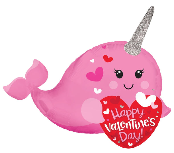 12" Airfill Only Happy Valentine's Day Narwhal Foil Balloon