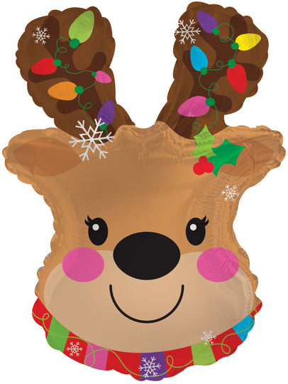 12" Airfill Only Reindeer With Lights Foil Balloon