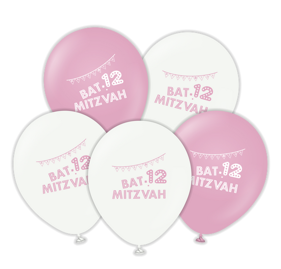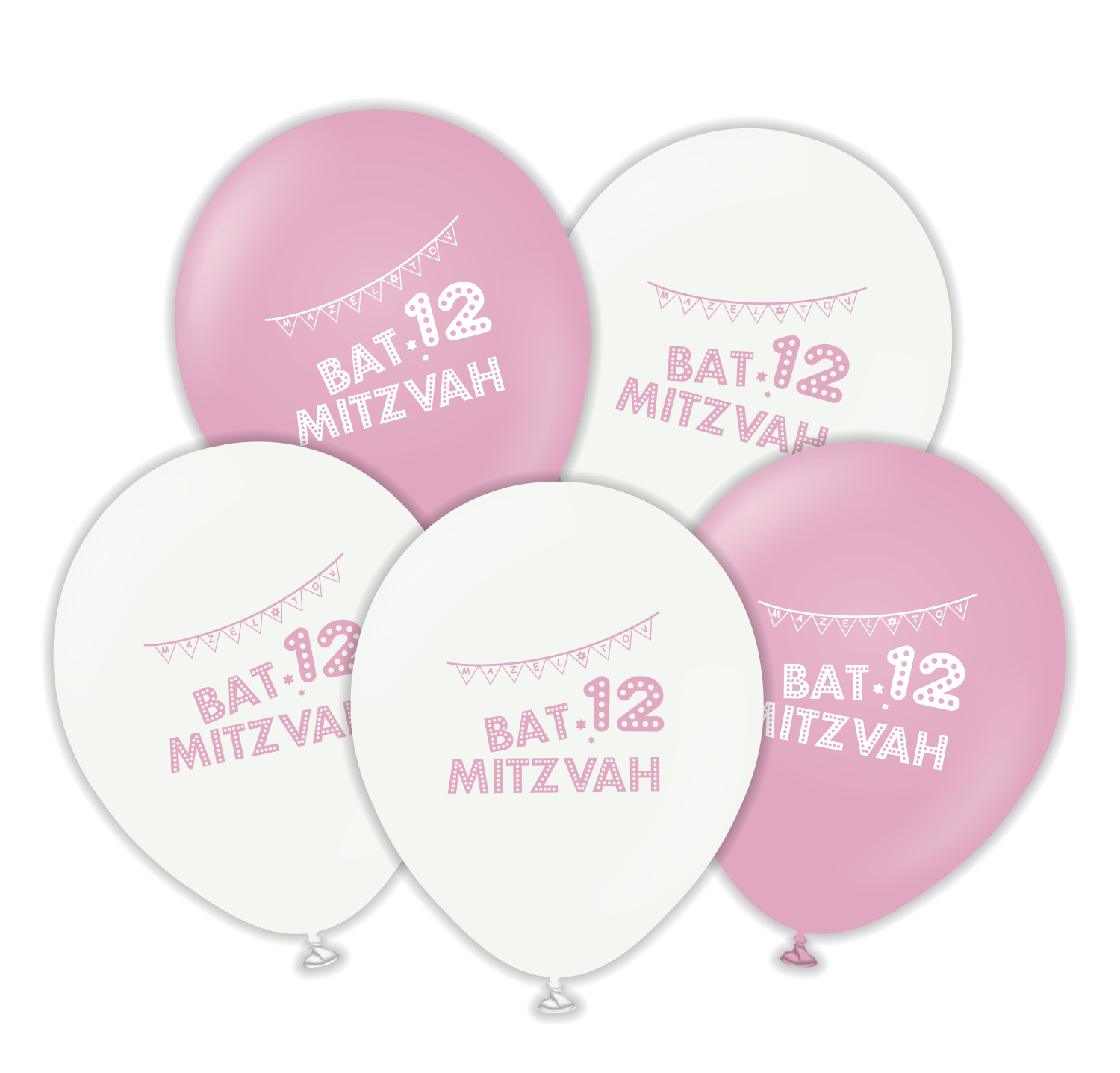 12" Bat Mitzvah Printed Assorted Standard Kalisan Latex Balloons (25 Per Bag)