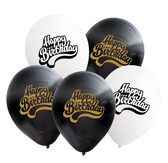 12" Happy Birthday Printed Assorted Standard Kalisan Latex Balloons (25 Per Bag)