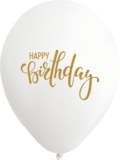 12" Happy Birthday White Balloon Gold Print Latex Balloons (25 Per Bag) 2 Side Print