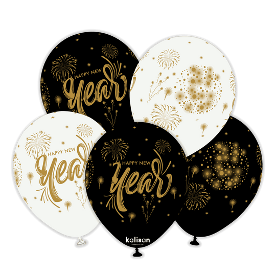 12" Happy New Year Fireworks Kalisan Printed Latex Balloons (25 Per Bag)