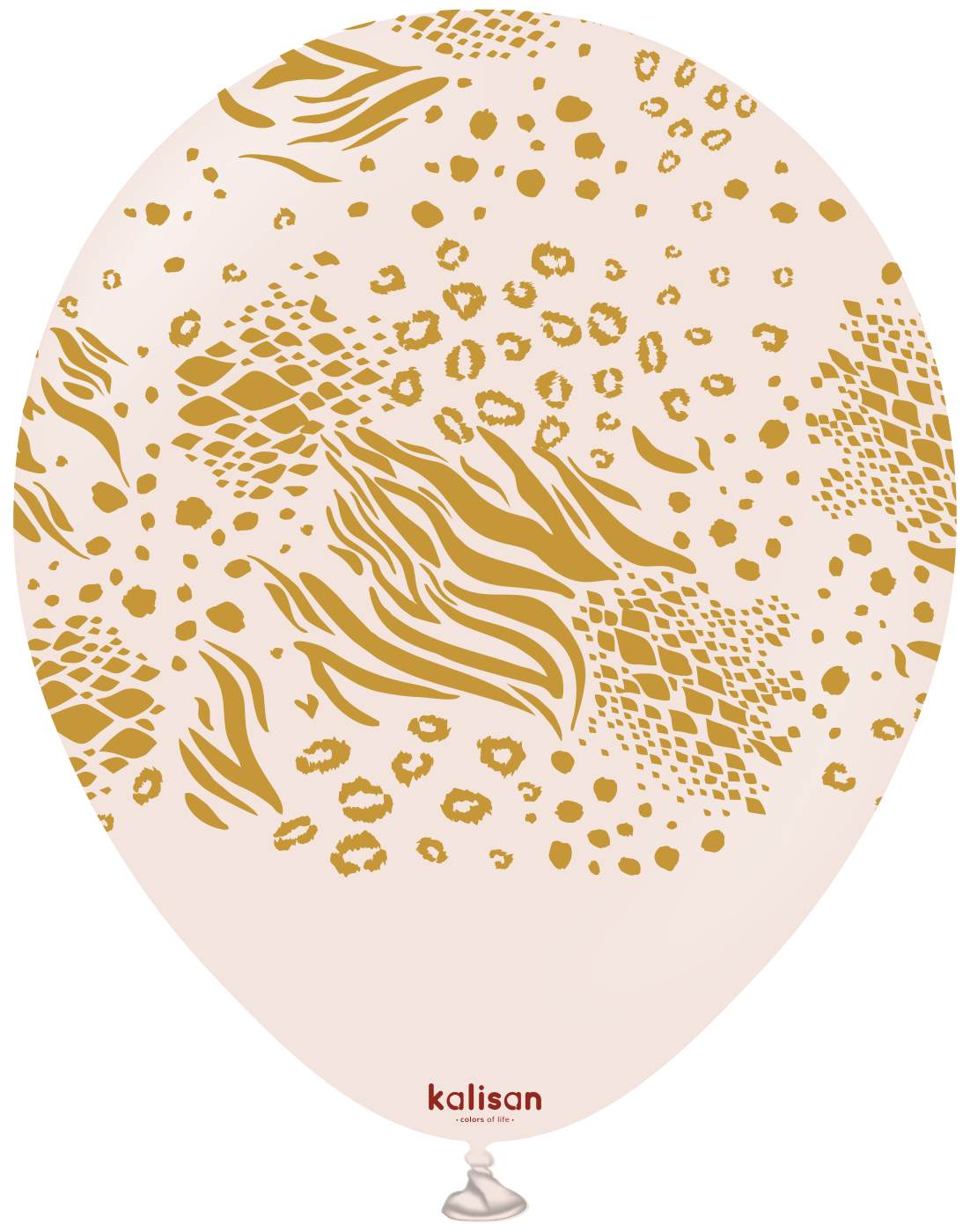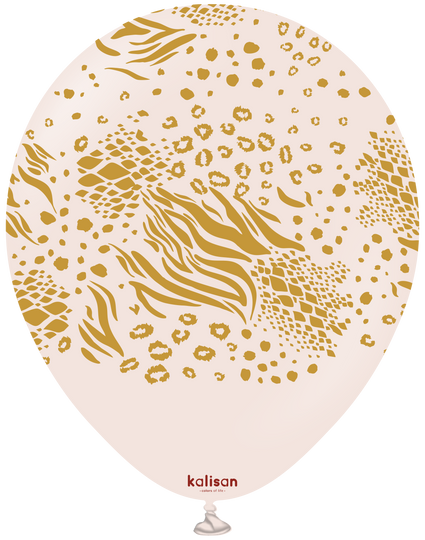 12" Kalisan Safari Mutant Pink Blush (Printed Gold-(25 Per Bag) Latex Balloons