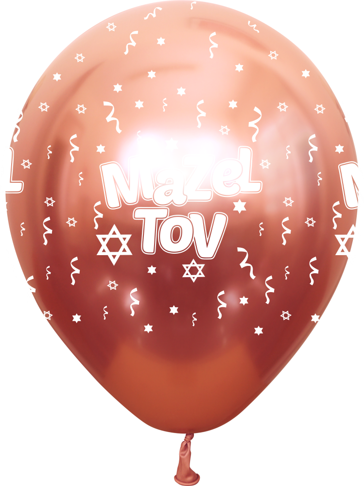 12" Mazel Tov Printed Rose Gold Mirror Kalisan Latex Balloons (25 Per Bag)