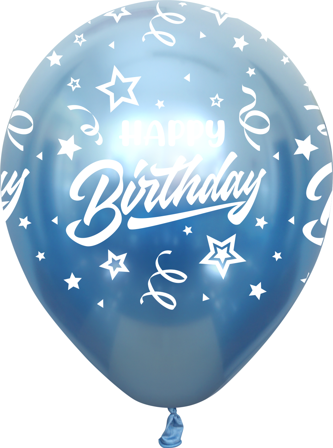 12" Mirror Happy Birthday All Around Blue Latex Balloons (25 Per Bag) 5 Side Print