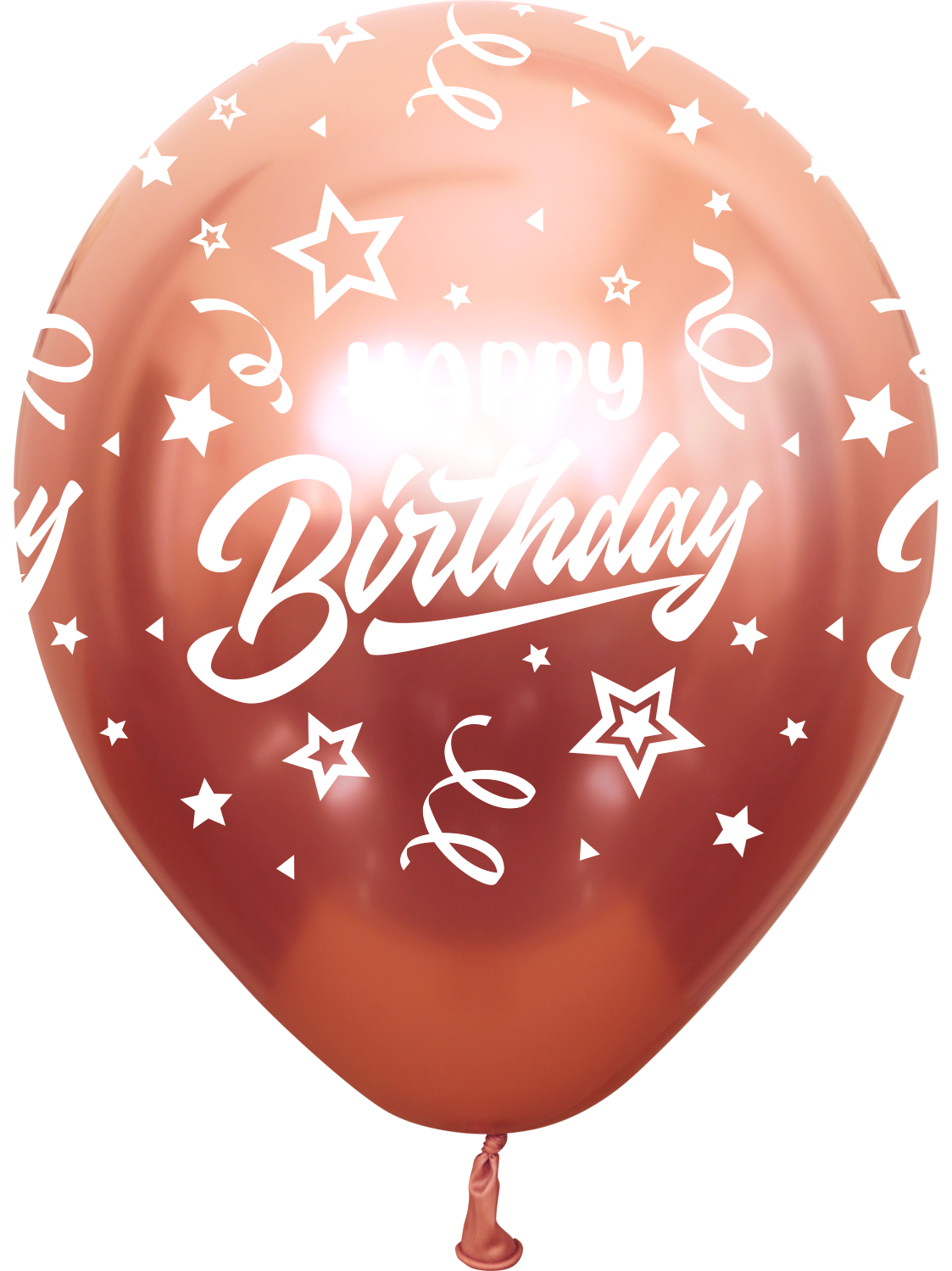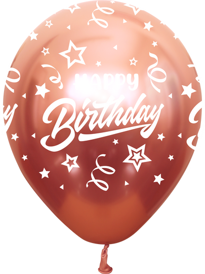 12" Mirror Happy Birthday All Around Rose Gold Latex Balloons (25 Per Bag) 5 Side Print