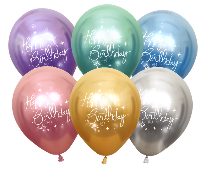 12" Mirror Happy Birthday Assorted Latex Balloons (25 Per Bag) 2 Side Print