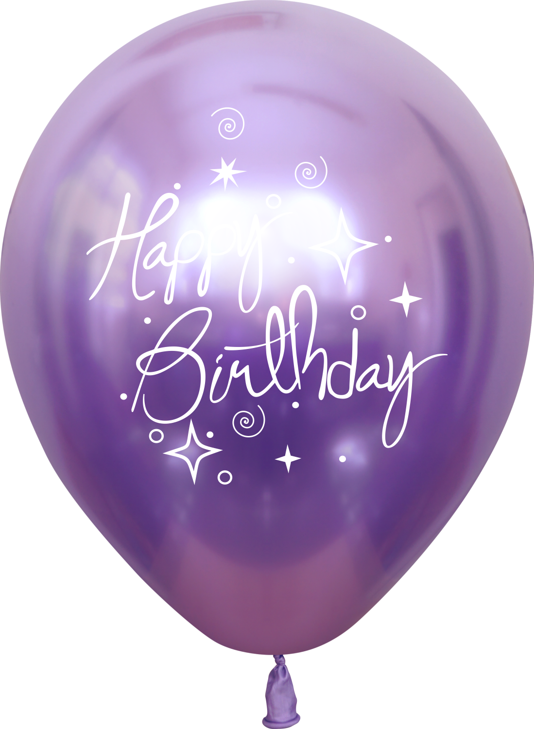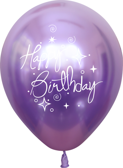 12" Mirror Happy Birthday Violet Latex Balloons (25 Per Bag) 2 Side Print