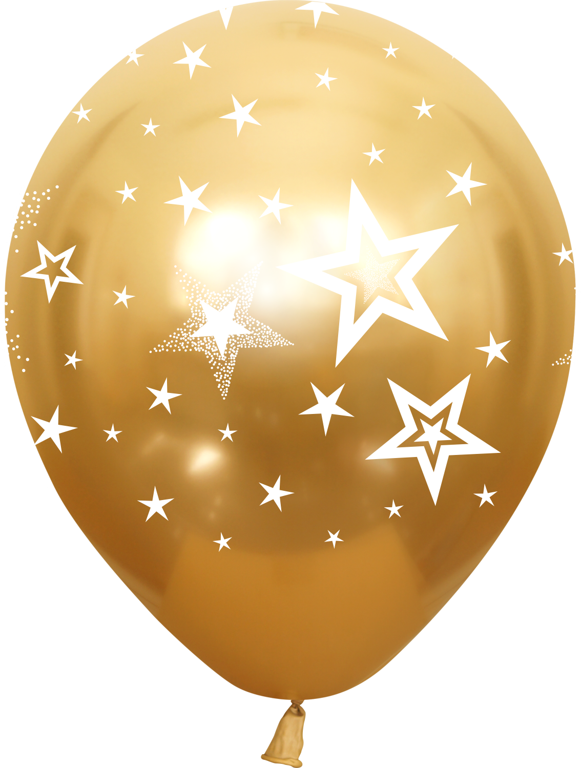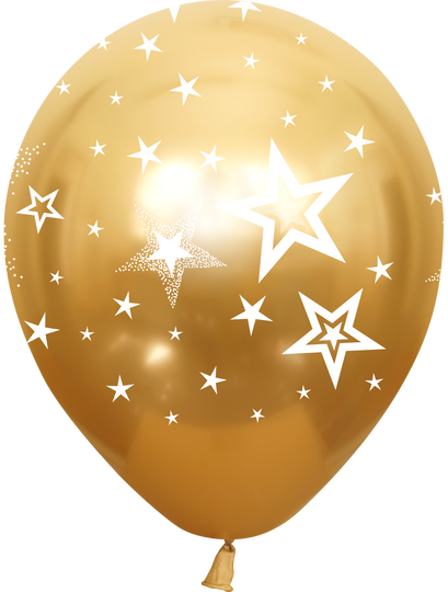 12" Mirror Stars All Around Gold Latex Balloons (25 Per Bag) 5 Side Print