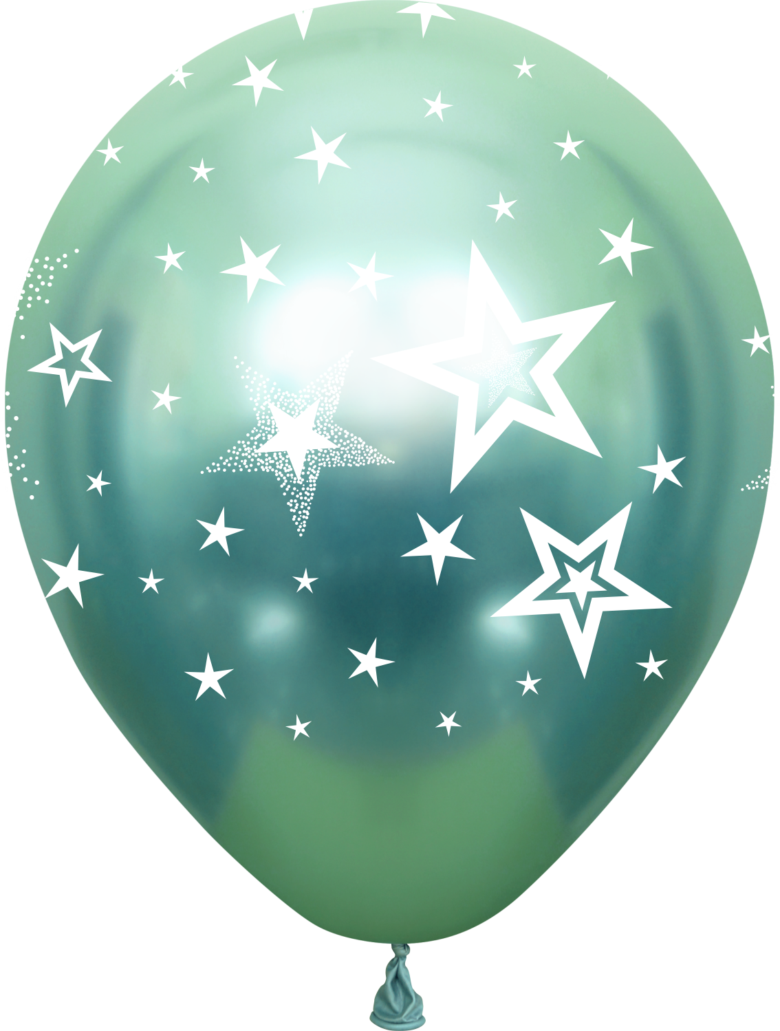 12" Mirror Stars All Around Green Latex Balloons (25 Per Bag) 5 Side Print