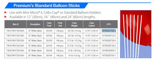 12" Standard White Balloon Sticks Only (100 Count). See product details for cups (sold separately).